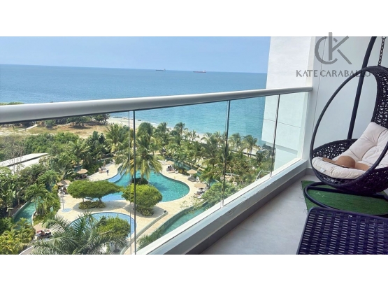 Distribución: Ofrece  92 m2,  balcón con vista directa al mar, 2 habitaciones, 2 baños, sala comedor con excelente,, cocina funcional, zona de labores independiente, parqueadero privado y depósito.